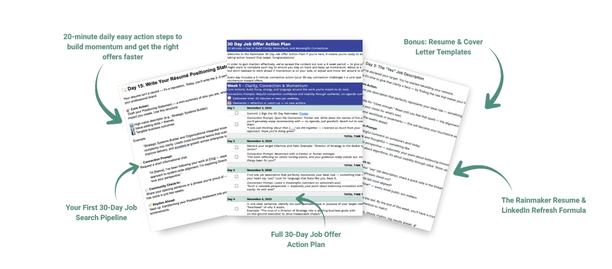 This plug-and-play roadmap helps you refresh your brand, reconnect your network, and build real job traction in just 20 minutes a day. Includes: